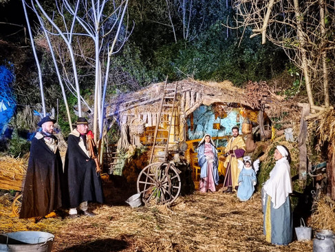 Tornando quindi al Presepe Vivente, per rappresentare tutto quel mondo ci vorrebbero molti più figuranti (cosí si chiamano i personaggi quando sono persone in carne ed ossa) e poi l’ambiente da ricostruire con tutte le botteghe, le taverne, i vari mestieri che servivano per vivere... in linguaggio cinematografico potremmo definirlo un Colossal! E se quei figuranti non fossero attori ma proprio i discendenti che di mano in mano hanno ricevuto la conoscenza dai loro padri e gli strumenti di ogni singola produzione? Ecco che tutto questo assume un valore immenso perche affonda nelle radici e le consolida, diventa un viaggio nel tempo tutto da vivere e rivivere nella comprensione dei significati perduti, un'esperienza immersiva per chi entra nel percorso guidato in cui il presepe si svolge. Non solo vivente... ma animato e coinvolgente, dove i figuranti interagiscono tra loro e con il visitatore. Accade quindi di dialogare con un giovane ubriaco irriverente, con un mendicante che piatisce l’elemosina lamentandosi che “fanno tutti finta di dargliela” (come lui fa finta di mendicare!), con il gobbo che promette la fortuna se gli tocchi la schiena, fino ad assistere alla spettacolare sceneggiata delle giovani lavandaie che litigano e un corteggiatore che rimedia un sonoro schiaffo (a ripetizione in tutte le repliche che si susseguono!)